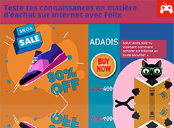 | Pour les jeunes et les adultes qui achètent sur Internet, ce jeu éducatif et interactif permet d'identifier les points de vigilance pour sécuriser ses achats et mieux connaitre ses droits de consommateur. |